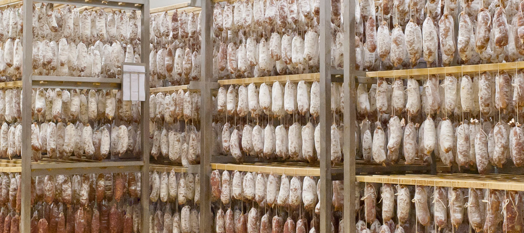 Created by Lucien and Marinette Bernard, it was first of all a small butcher's shop that opened in the village. Its reputation quickly exceeded the limits of the canton. At the end of the 1950s, their son Eugène joined Établissements Bernard which expanded into a new, more modern store and laboratory-workshop. In 1978, the curing activity was developed in a dedicated and modernized building in order to produce sausages, rosettes, jesus and other filet mignons. These are the workshops which still house Le Salaisons Bernard today. The carcasses of the pigs from Yssingeaux are boned and prepared by our butchers, so that the fresh meat can be used to make the product. The sausages are hand-tied and matured in wooden drying sheds where the natural flower (the same one used to mature the famous PDO fourme d'Ambert blue cheese) develops very slowly to give the best flavour to the products.