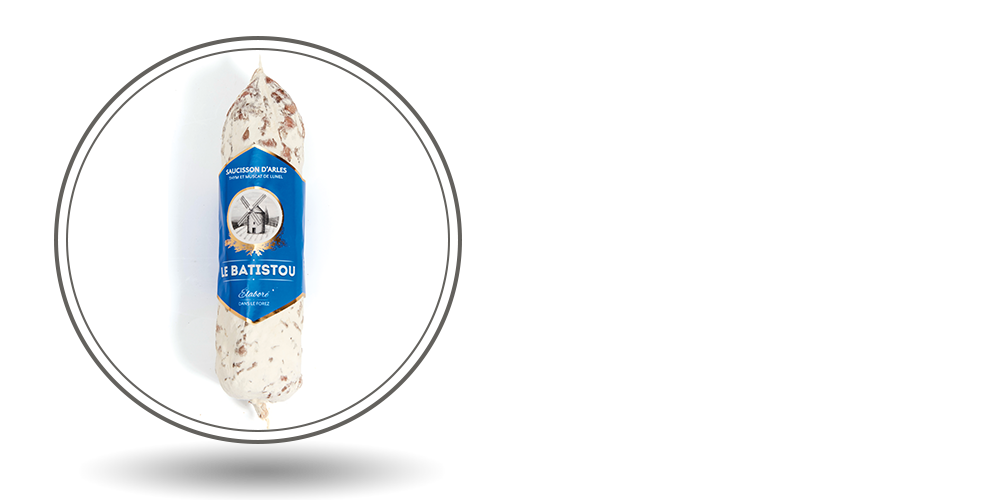 Invented in the Middle Ages by natives of Arles, France, our timeless Authentic Arles sausage has persisted through the centuries and today is one of our top cured products! The original recipe has changed very little: It still uses a mild blend of pork and beef, delicately flavored with thyme and Muscat de Lunel wine.